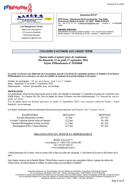 dans les Cinque Terre (réservé aux adhérents) : 4 jours de randonnée et 4