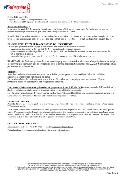 nuitées → Inscription et détail dans l'>>espace réservé aux adhérents<<