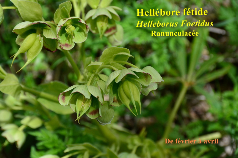 - L'Héllébore fétide (Helleborus Foetidus), en floraison de février à avril: