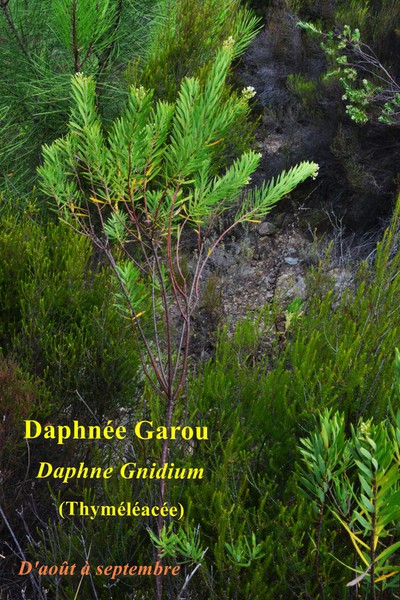 - La Daphnée Garou (Daphne gnidium), en floraison de septembre à octobre :