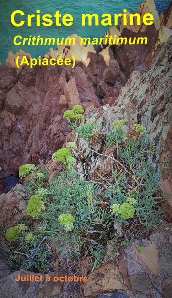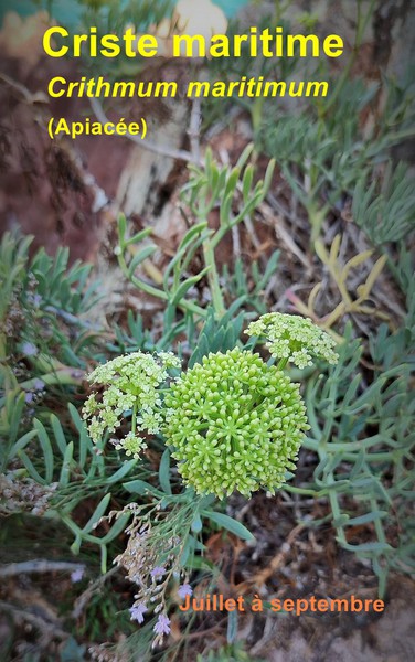 La Criste marine, de la famille des Apiacées, outre qu'elle habite superbement son biotope des sentiers littoraux, elle est parfaitement bâtie pour "le rôle": avec ses feuilles épaisses, coriaces, et cette magnifique couleur bleue verte, est inconfondable avec une autre !