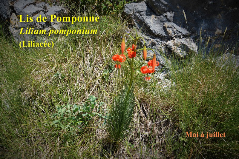 - Le Lisde Pomponne (Lilium pomponium), en floraison de mai à juillet :