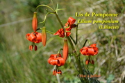 De la famille des Laliacées, voici le Lis de Pomponne! Un magnifique lis haut de 70 cm, tellement parfait, qu'on le croirait "artificiel"! Présent dès juin, dans les pelouses pré alpines, vers Andon.