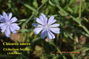 La chicorée amère, est l'une des rares plantes qui persistent à fleurir sur les bords des chemins et des routes à partir de juillet jusqu'à septembre, alors que tout est grillé par le soleil ou... débroussaillé par la civilisation! Ses superbes inflorescences, d'un bleu céruléen sont visibles le matin, elles se ferment sous le soleil de l'après midi.