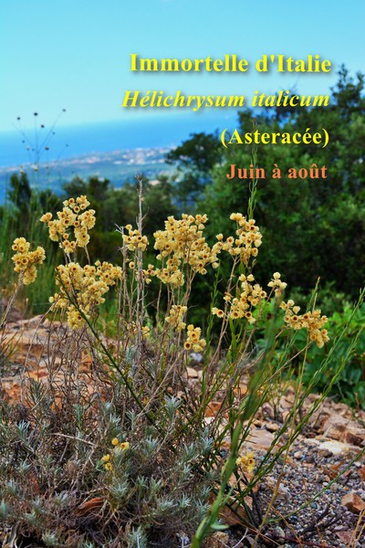 De la famille des Astéracées, l'immortelle, alias l'Hélichryse d'Italie, donne sa note au parfum enivrant de la garrigue, quand la rando s'ébranle dans les petits matins... Des fragrances de curry mêlées au moka, au paroxysme de sa floraison en juin dans l'Esterel !
